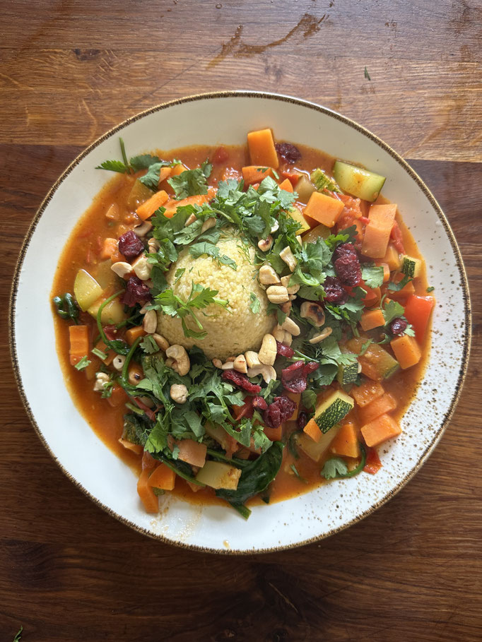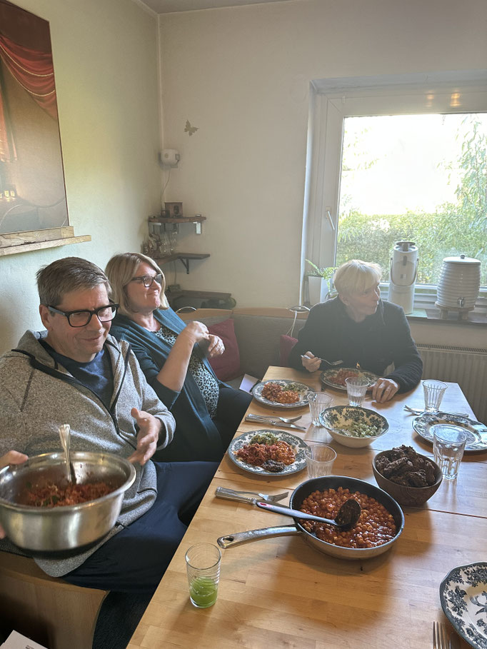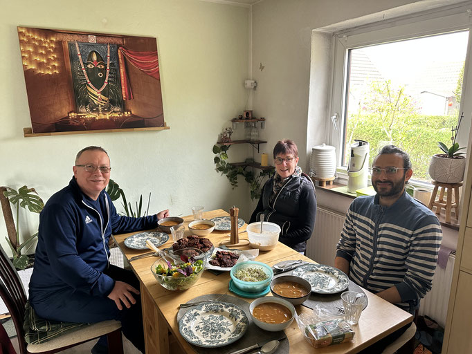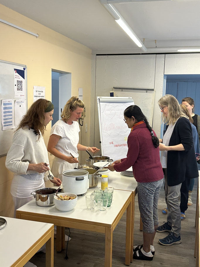 Petra: "Köstliche Mahlzeiten aus der ayurvedischen Ernährung, intuitiv von Fenia zubereitet und professionell erklärt und angeleitet. Ein neues Esserlebnis auf Grund mir fremder Zutaten und Gewürze. Ich habe einen deutlichen Anreiz bekommen noch mehr Achtsamkeit auf ausgewogene Ernährung zu richten, um zukünftig emotionales Essen besser kontrollieren zu können. Ich habe erfahren, den Fokus auf meine körperlichen Vor- und Nachteile zu bekommen und sie anzuerkennen. Zu realisieren, dass die Bewegungsabläufe von mir nicht perfekt ausgeführt werden müssen um dennoch langfristig positiv auf Körper und Geist zu wirken. Übung ist allerdings alles!"