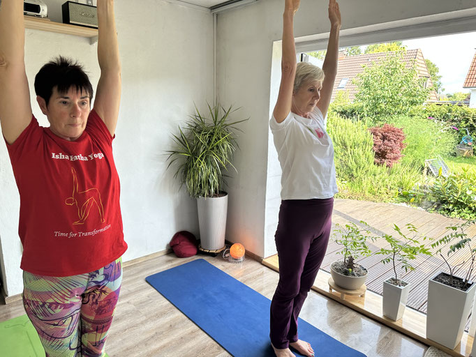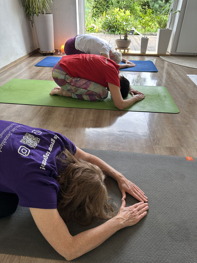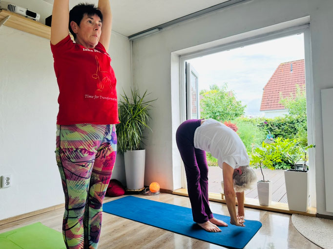 Jörg: "Mein Ziel ist es, auch im Alter noch beweglich und fit zu bleiben. Mit der Anleitung wurde mir die Latte zwar hoch, aber nicht zu hoch gelegt. Fenia Mette ist in der Lage auf die Bedürfnisse und körperlichen Voraussetzungen einzugehen und sanft, aber bestimmt anzuleiten. Stuhlyoga kann später kommen. Positive Veränderung: ich kann nun bewusster und tiefer atmen."